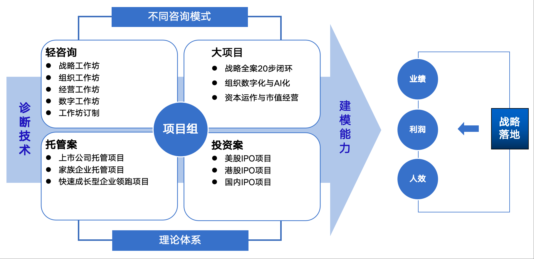 系统导入咨询方法论与工具,构建企业内部咨询能力体系,培养企业内部复合型咨询人才。项目的核心价值: